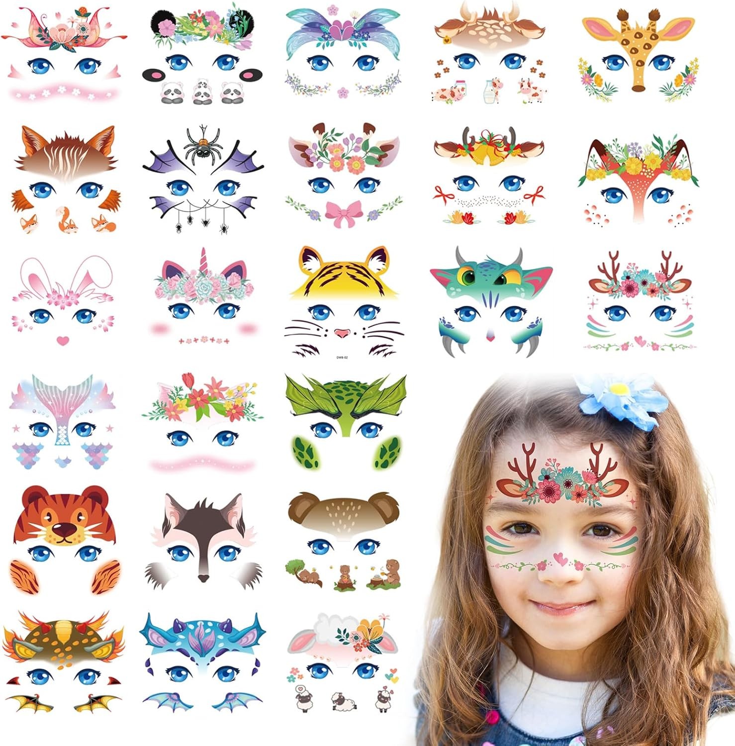 24 Sheets Animal Face Tattoos for Kids, Cute Animal Face Paint Makeup Tattoo St