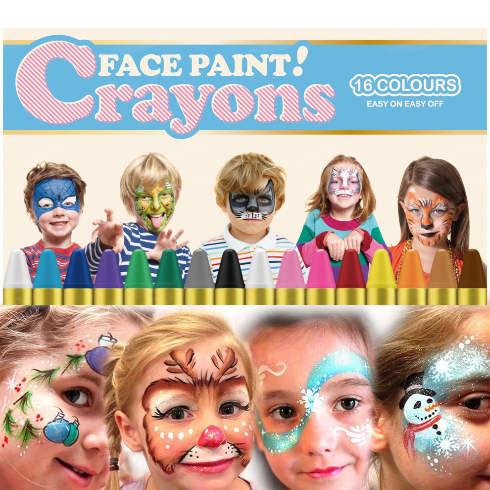 16 Colors Face Paint Set, Body Paint Sticks Red and White Face Paint, Face Paints for Children, Kids Face Paint Pretend Play, Face Painting Kit for