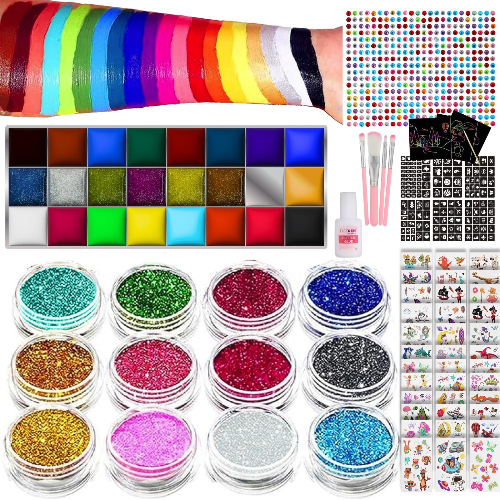 Kids' Festival Face Paint Kit - Glitter Tattoos, Gems & Temporary Tattoos - Perf