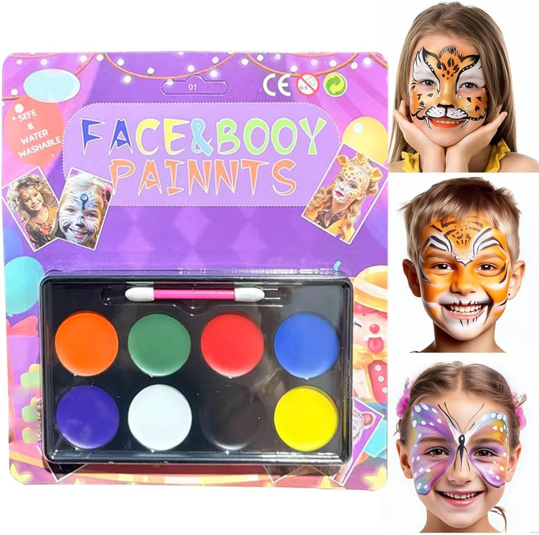 osiuujkw Kids Face Body Paint Kit Includes 12 Washable Colors Safe For Skin With Easy To Brushes Parties And Halloween Children Face Body Paint Kit 12 Colors Washable