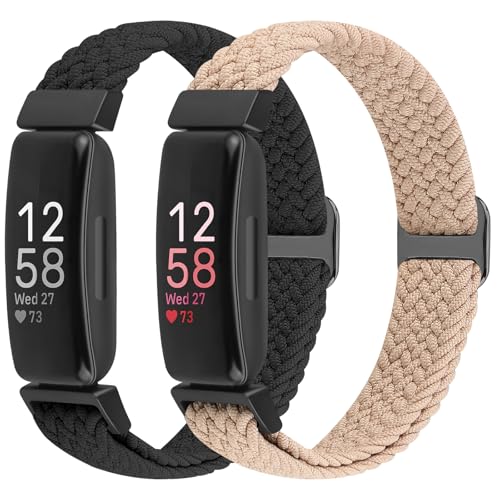 BTTNG 2 Pack Elastic Braided Straps Compatible with Fitbit Inspire 3, 2, HR, Ace 3, 2 Women, Men, Kids, Adjustable Stretchy Wristbands Loop Sports Replacement Band