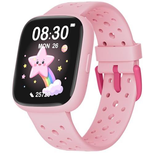 TICTIKY Kids Smart Watch for Girls 5-12, Kids Fitness Tracker Watch with Pedometer, No Phone Needed, Games with Parental Control, IP68 Waterproof, Heart Rate, Sleep Monitor, Step Counter, 80 Sports