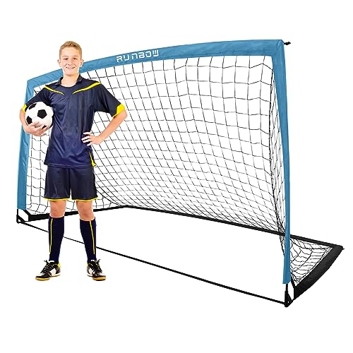 RUNBOW 6x4 ft Kids Football Goal, Portable Soccer Net for Backyard Practice with Carry Bag (Grey Blue, 1 Pack)