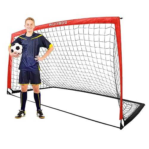 RUNBOW 9x5 ft Kids Football Goal, Portable Soccer Net for Adult Junior Backyard Practice with Carry Bag (Red, 1 Pack)