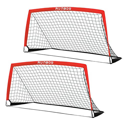 RUNBOW 6x4 ft Kids Football Goal, Portable Soccer Net for Backyard Practice with Carry Bag (Red, 2 Pack)