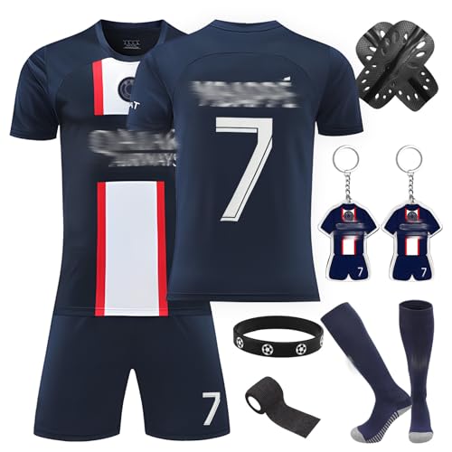 Heartsking Kids Football Kit #7 Home Away Soccer Jerseys & Kits for Boys & Girls, Football Training Shirts, Shorts, Socks, Guards, Keychain, Bracelets & Bandages, Gifts for Children