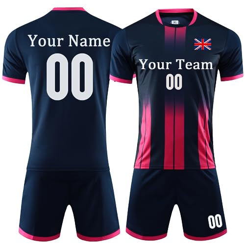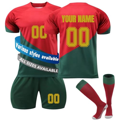 Football Kits for Kids and Adult, Personalised Football Shirt with Name Number, Shirts Shorts and Socks Set, Gifts for Boys Men