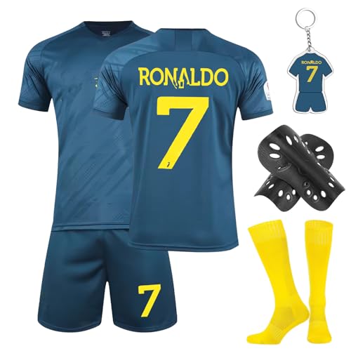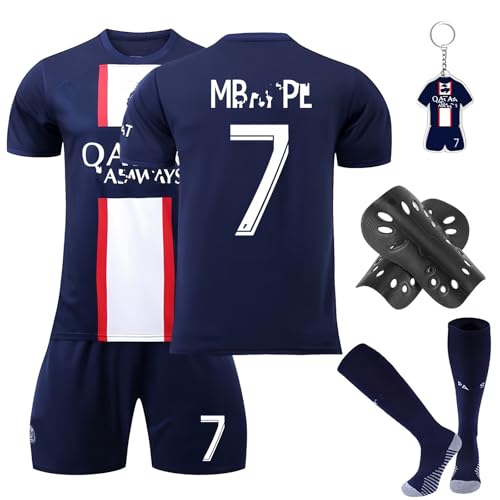 Yumcute Kids Football Kits - No.7 & 10 Jerseys, Training Set - Shirts, Shorts, Socks, Guard, Keychain - 23/24 Home & Away Soccer Jerseys - Gifts for Boys & Girls