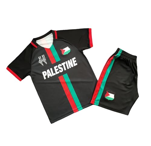 Kids Palestine Shirt Football Kits Jerseys Boys Girls Sports Shorts Sets Tracksuit Soccer Activewear Short Sleeve Set Black Kit White Kit Age 2-13 Years (UK, Age, 6 Years, 7 Years, Regular, Black)
