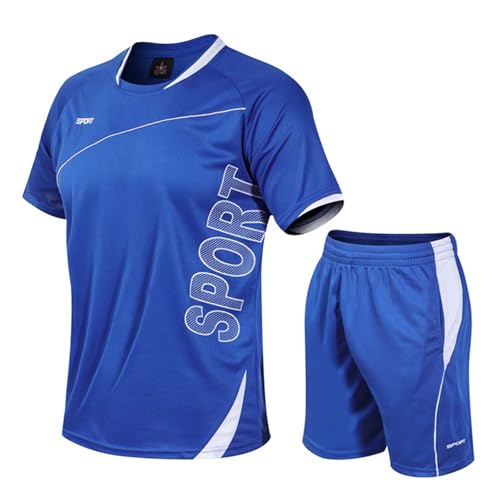 Adixun Boys Football Kits Kids Sports Football Jersey Sets Children Football Training Shorts and T-shirt Sets Gym Tennis School Pe Kits(Blue,9-10 Years)