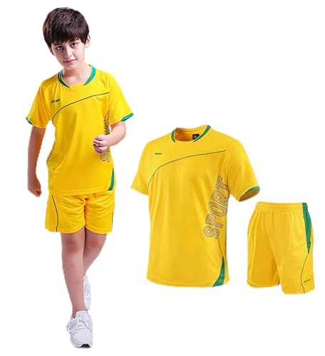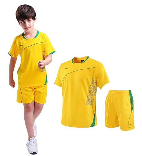 Hikewin Boys Football Kits Uniform Jerseys Unisex Kids Sports Shorts SetsTracksuit Training Activewear Short Sleeve Set Yellow 10-11Years