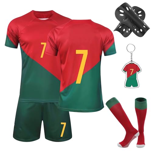 Dekewe Football Kits for Kids, No.7 Soccer Jerseys Football Kits for Kids Boys Girls, Football Training Shirts Shorts Socks Guard Plate Keychain Bracelets and Bandages, Football Kit Gift