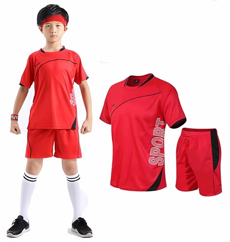 Hikewin Kids Sports Shorts Sets Football Uniform Jerseys Kit Activewear Short Sleeve Kits Red 10-11Years