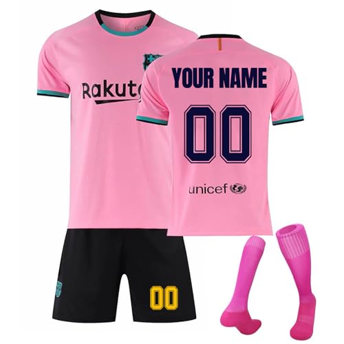 Eoklikla Personalised Soccer Jersey Barca Tracksuit, Home Away Kits for Boys Men's Football Training Shirts Shorts and Socks Activewear Football Kit Sportwear Soccer Jersey for Adults and Kids