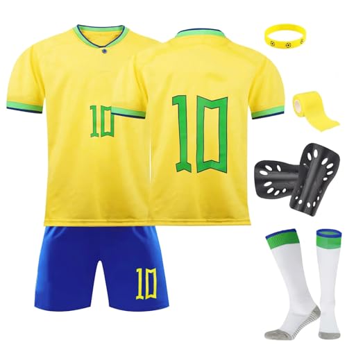 Ainvliya Football Kits for Kids, No. 10 Football Training Set Home Away Soccer Jerseys Boys Football Training Shirts Shorts Guard Plate Keychain Socks Bracelet Bandage Gift for Kids Boys Fans