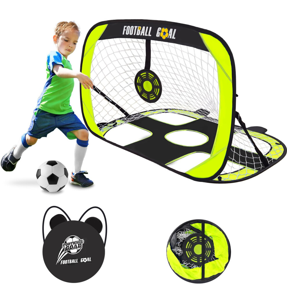 CATCHLUCK Football Goals for Kids, Football Net for Garden, Pop Up Target Goal Posts Net Training Equipment with Carry Bag, Green-120x90x90