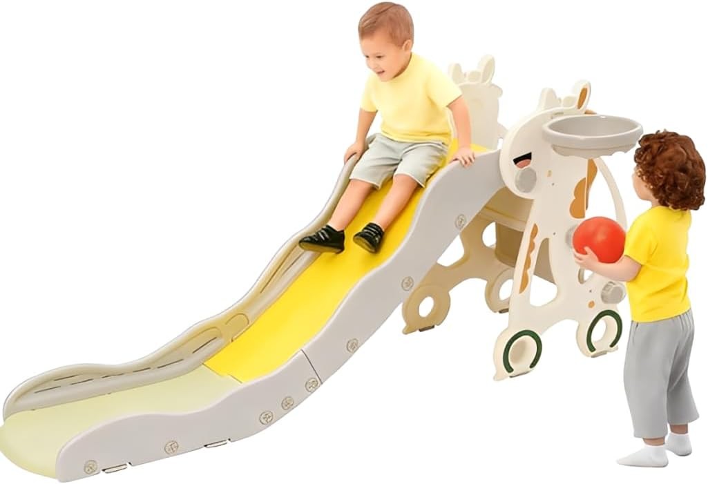 2 In 1 Baby Slide with Basketball Hoop,Kids Garden Slide,Indoor/Outdoor Play Eq