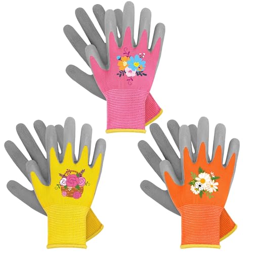 3 Pairs Kids Gardening Gloves, Kids Rubber Coated Garden Work Gloves