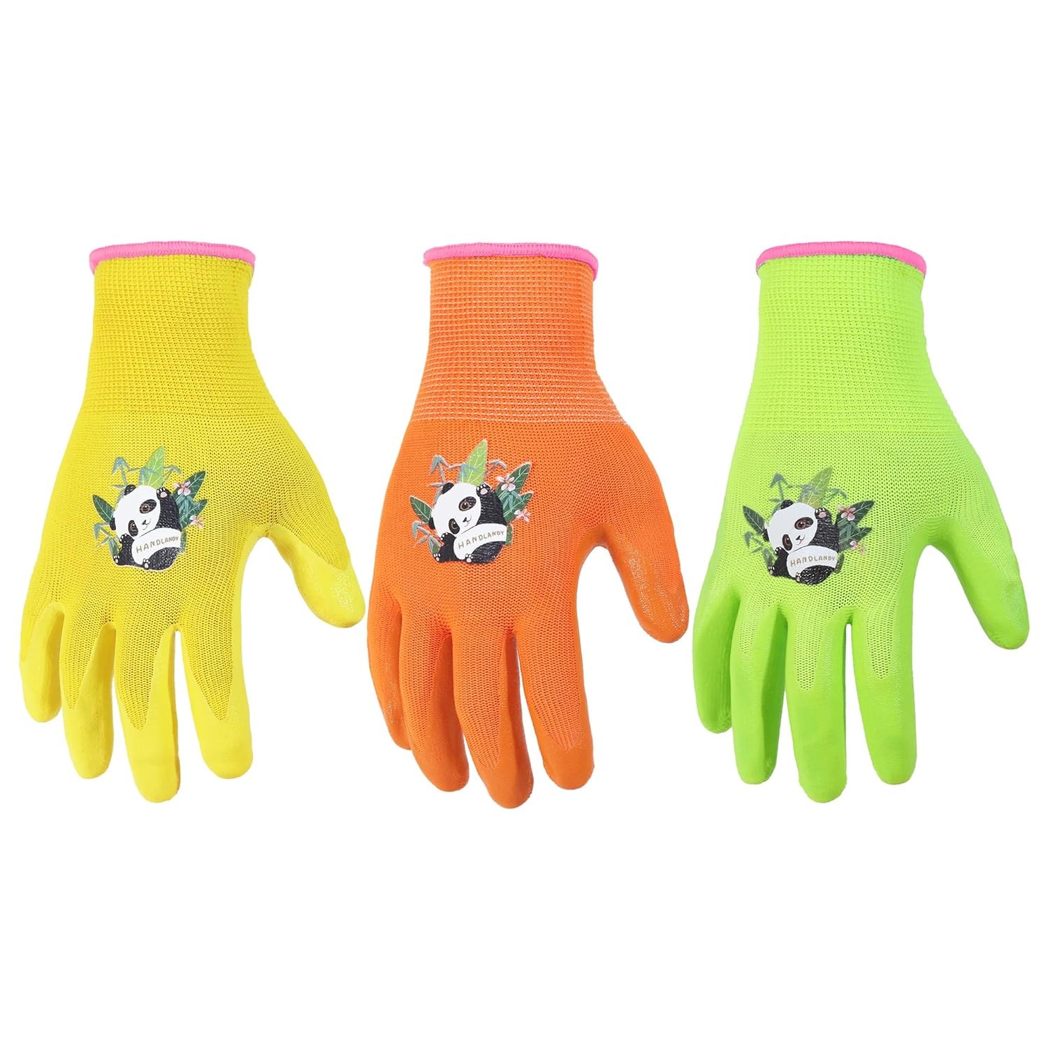 HANDLANDY Kids Gardening Gloves for Age 2-13 Latex Free, 3 Pairs Nitrile Coated Toddler Garden Gloves for Childrens Little Girls Boys Youth (Size 4 (