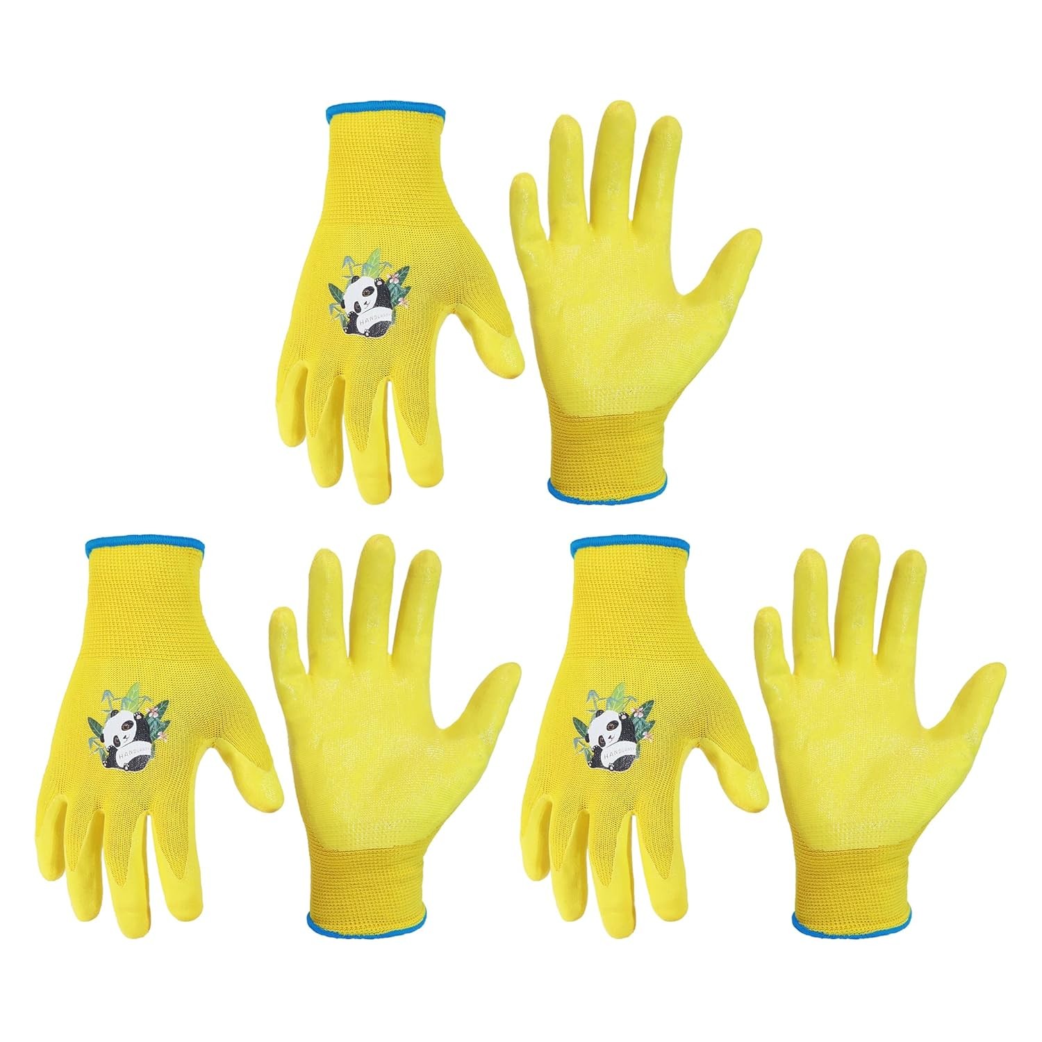 HANDLANDY 3 Pairs Kids Gardening Gloves for Age 2-13, Toddler Children Garden Yard Work Outdoor Playing Gloves, Rubber Coating, for Girls Boys Youth (Yellow, Size 4, Age 5-7)