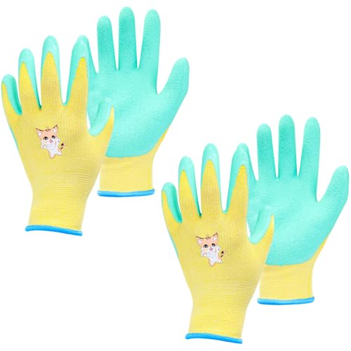 Vgo... 2 pairs Kids Gardening Gloves Utility, Children Working Garden Gloves Toddler Latex Coating for Boys&Girls Age 3-12 years