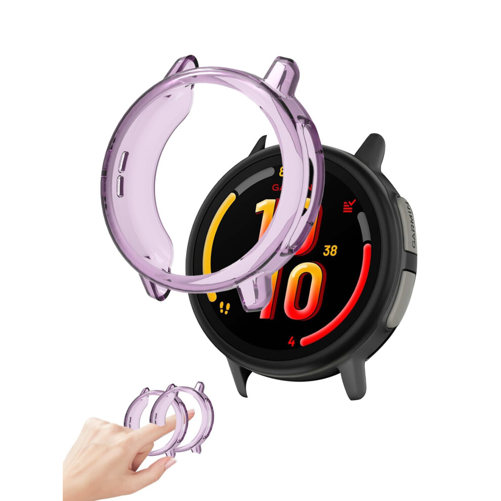 2Pack Clear Purple Shockproof TPU Case for Garmin Bounce 2 Kids Smartwatch with Quick Snap Fit