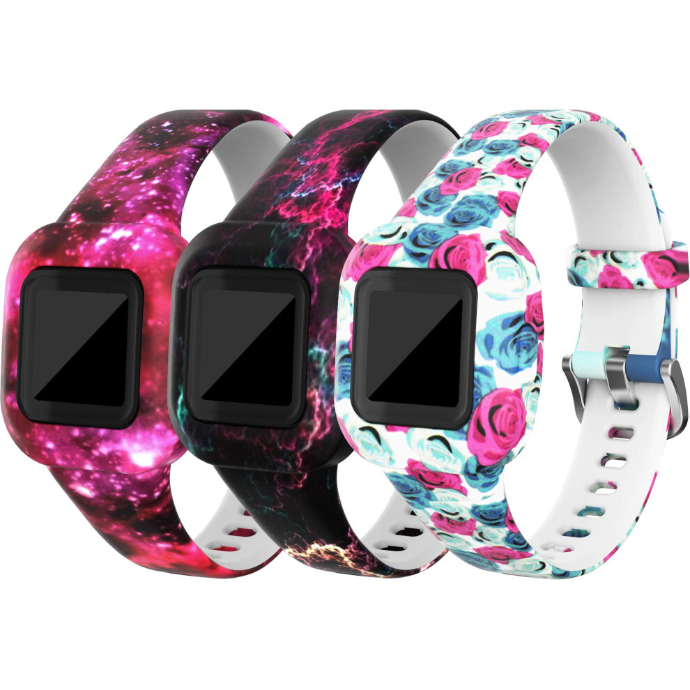TenCloud Straps Compatible with Garmin Vivofit jr.3 Strap, (3-Pack) Replacement Soft Silicone Wristband Pattern Floral Band Armbands for Kids 4+ for