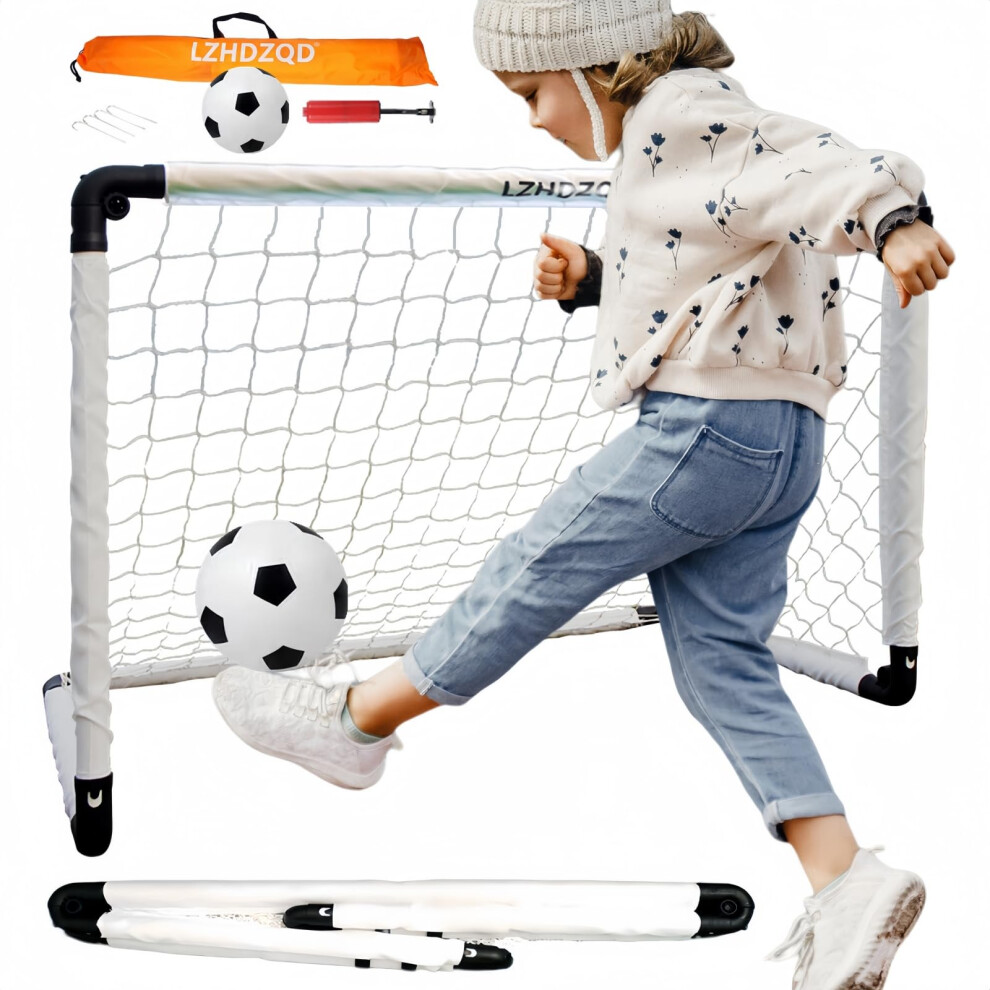 LZHDZQD Kids Football Goal 35.43in x 23.62in + Mini Football 16cm Set, Small Portable Foldable Goal Posts for Kids, Toddler Goals for the
