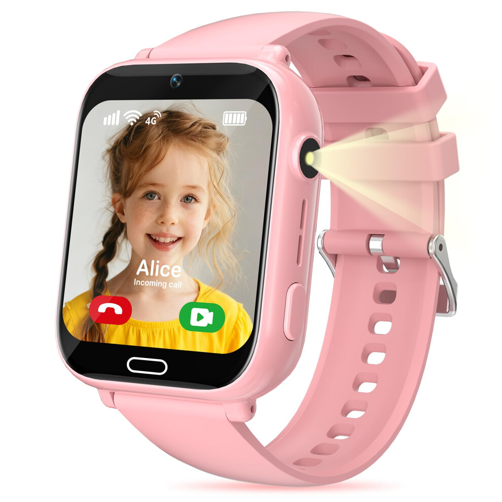 ELEJAFE Kids GPS Smart Watch, Kids Smart Watch for Boys Girls with Call, Video, Family Voice, Chat, SOS, IP68 Waterproof, School Mode, Camera, Alarm, Calculator, Birthday Gifts(Pink-4G-GPS-Call)