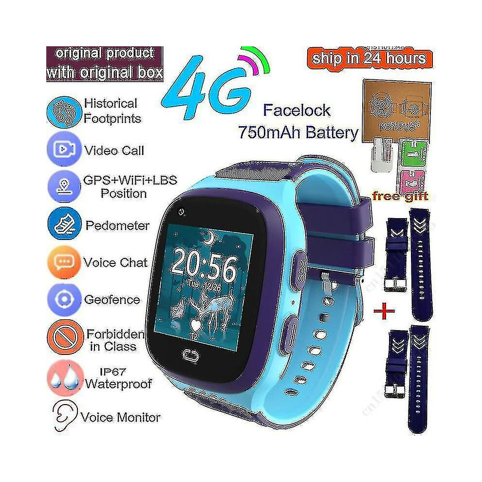 (style 6, European Version) 4g Kids Smart Watch Gps Wifi Video Call With Face-lock Sos Tracker Ip67 Waterproof Children's Smartwatch Vs Y95 A36e 4g
