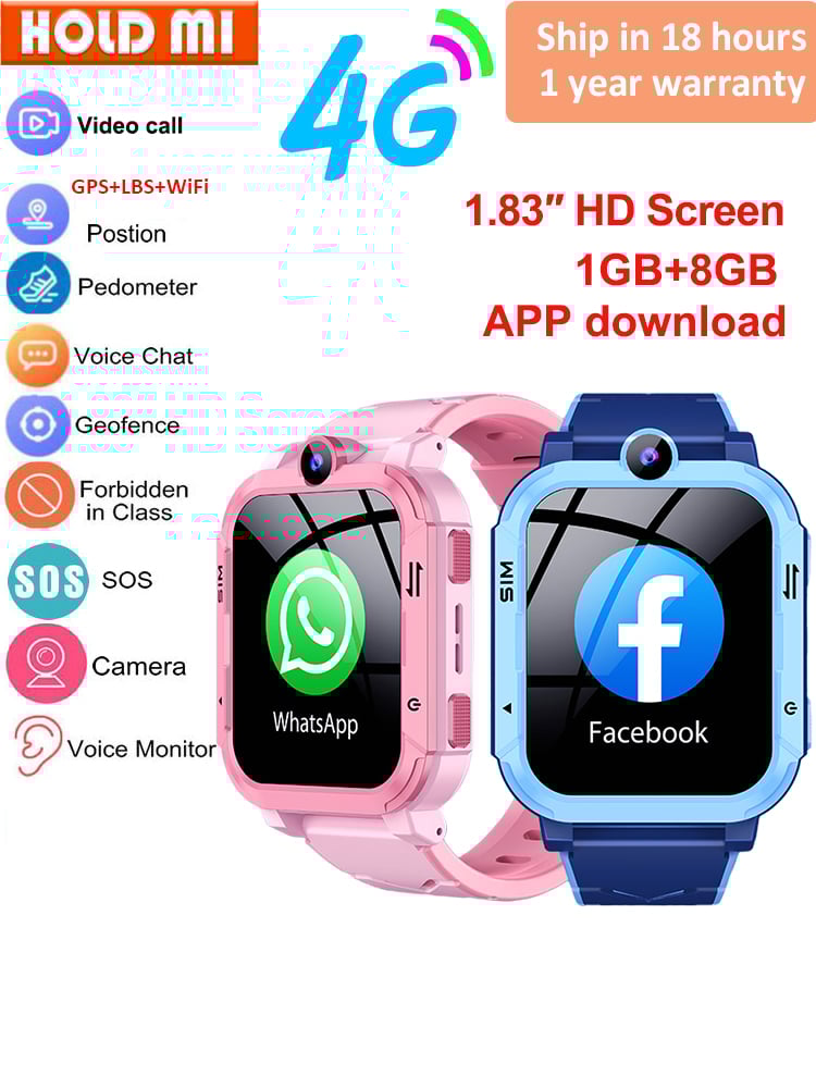 4G Kids Smart Watch GPS WIFI Video Call APP Download SOS Phone Call Children Smartwatch Monitor Tracker Location Boys Girls Gift