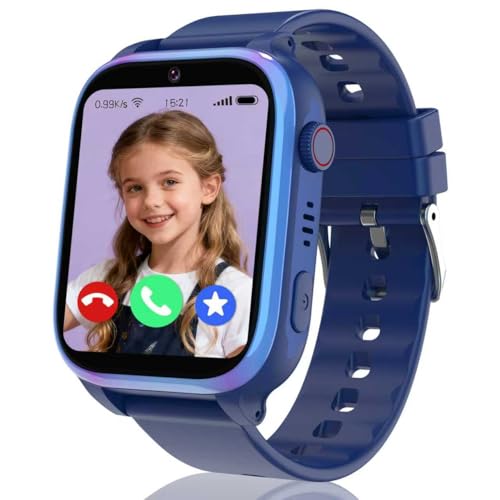 ELEJAFE Kids GPS Smart Watch, Kids Smart Watch for Boys Girls with Call, Video, Family Voice, Chat, SOS, IP68 Waterproof, School Mode, Camera, Alarm, Calculator, Birthday Gifts(Blue-4G-GPS-Call)