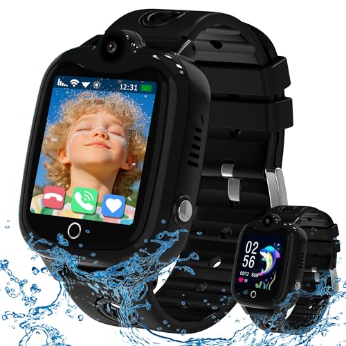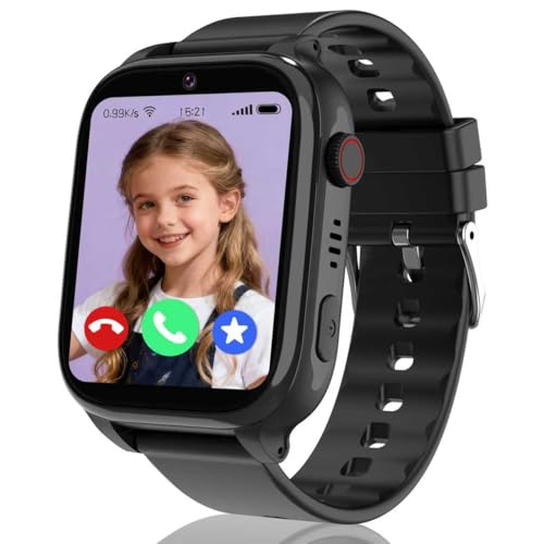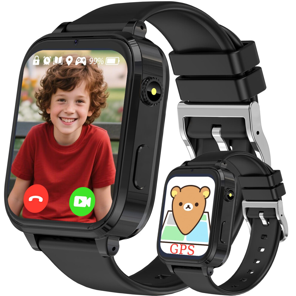 ELEJAFE Kids GPS Smart Watch, Kids Smart Watch for Boys Girls with Call, Video, Family Voice, Chat, SOS, IP68 Waterproof, School Mode, Camera, Alarm, Calculator, Birthday Gifts(Black-4G-GPS-Call)