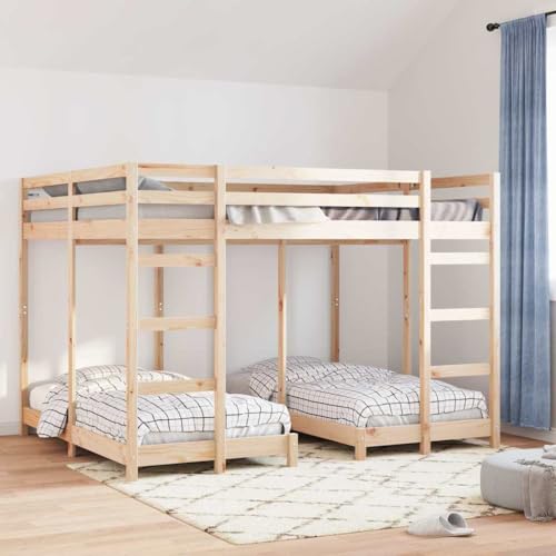 Qnhdfrt Bunk Bed Frame 90x200 cm Solid Pine Wood Kids High Sleeper with Roof 205.5x95.5x112 cm No Mattress Two Single Beds Safe Guardrails for Small Bedrooms Playrooms