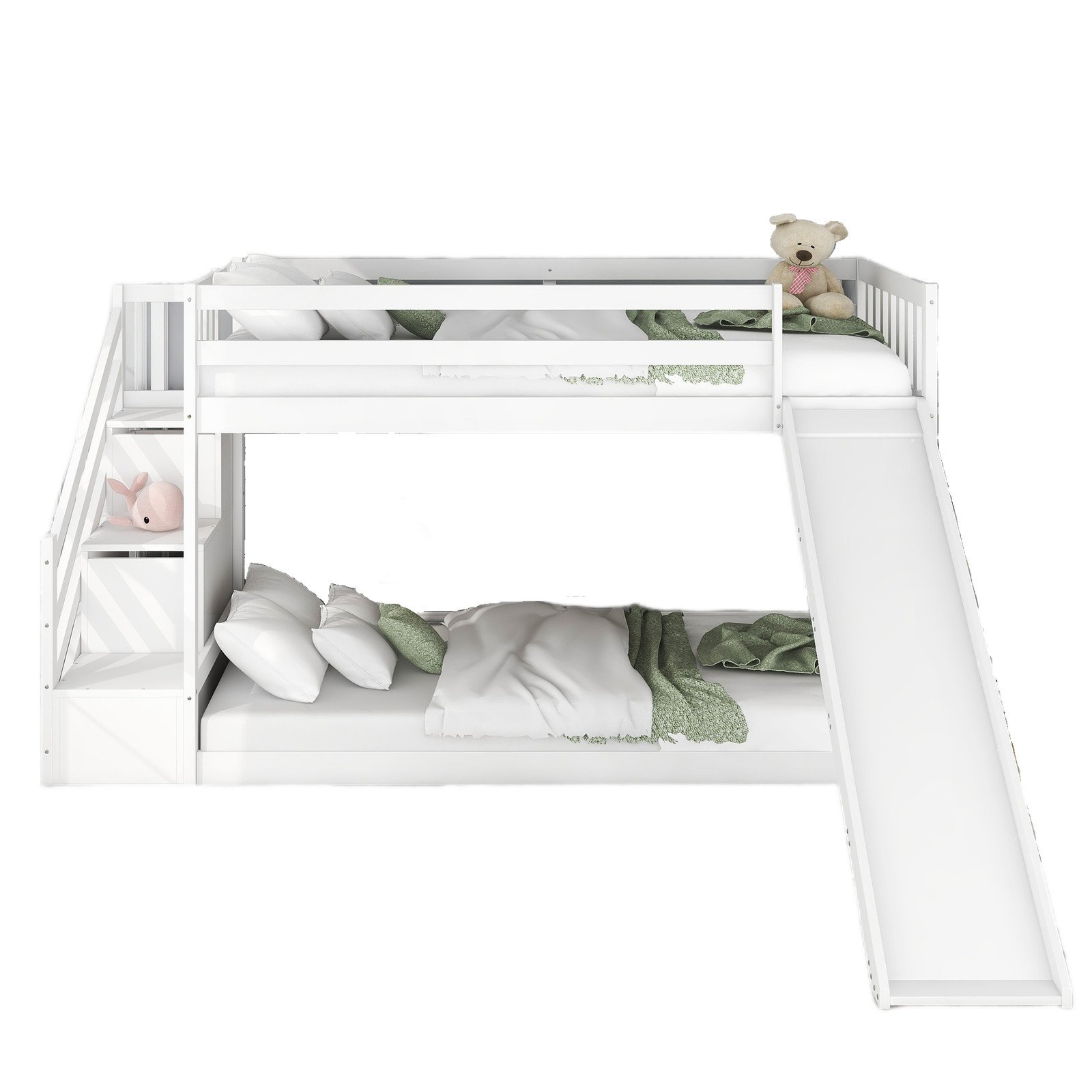 Bunk Beds for Kids, Double High Sleeper Bed Frame with Storage and Guardrail, Space-Saving Design Children Cabin Bed with Storage Stair for Bedroom, Dorm, White (No Mattress)