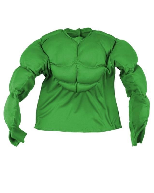 KIDS GREEN MUSCLE CHEST SHIRT – HULK STYLE SUPERHERO FANCY DRESS COSTUME TOP
