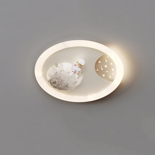 Nordic White Astronaut Flush Mount Ceiling Light Fixtures Modern Minimalist Round Kids Room Ceiling Lamp Creativity Boys Girls Bedroom Chandelier For Nursery Children Baby's Room Kindergarten