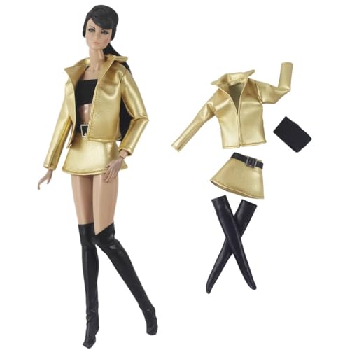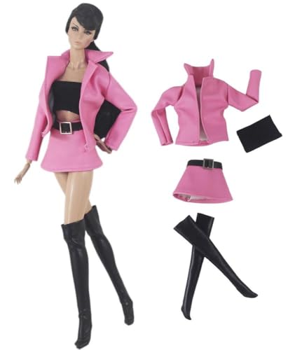 Codulu Doll Clothes for 11.5 inch America Doll 30cm Girl Doll-Leather Jacket Top Skirt Boots Casual Outfits Costume for 1/6 BJD Doll Kids Toys-4PCS/Set-#F