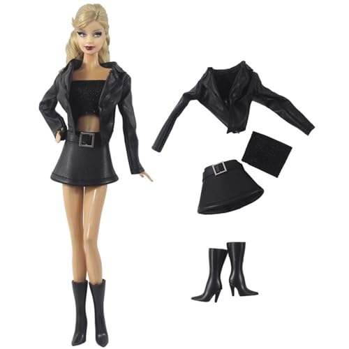 Codulu Doll Clothes for 11.5 inch America Doll 30cm Girl Doll-Leather Jacket Top Skirt Boots Casual Outfits Costume for 1/6 BJD Doll Kids Toys-4PCS/Set-#E