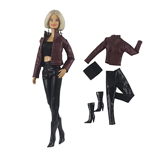 Codulu Doll Clothes for 11.5 inch America Doll 30cm Girl Doll-Leather Jacket Top Shoes Casual Outfits Costume for 1/6 BJD Doll Kids Toys-3PCS/Set-#G