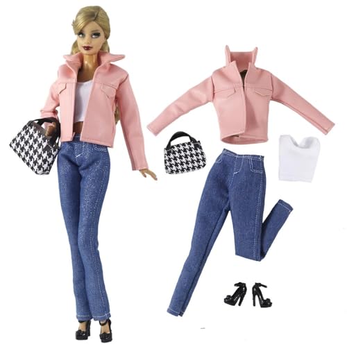 Codulu Doll Clothes for 11.5 inch America Doll 30cm Girl Doll-Casual Outfits Leather Jacket Skirts Pants Tops Shoes Bag Costume for 1/6 BJD Doll Kids Toys--#F