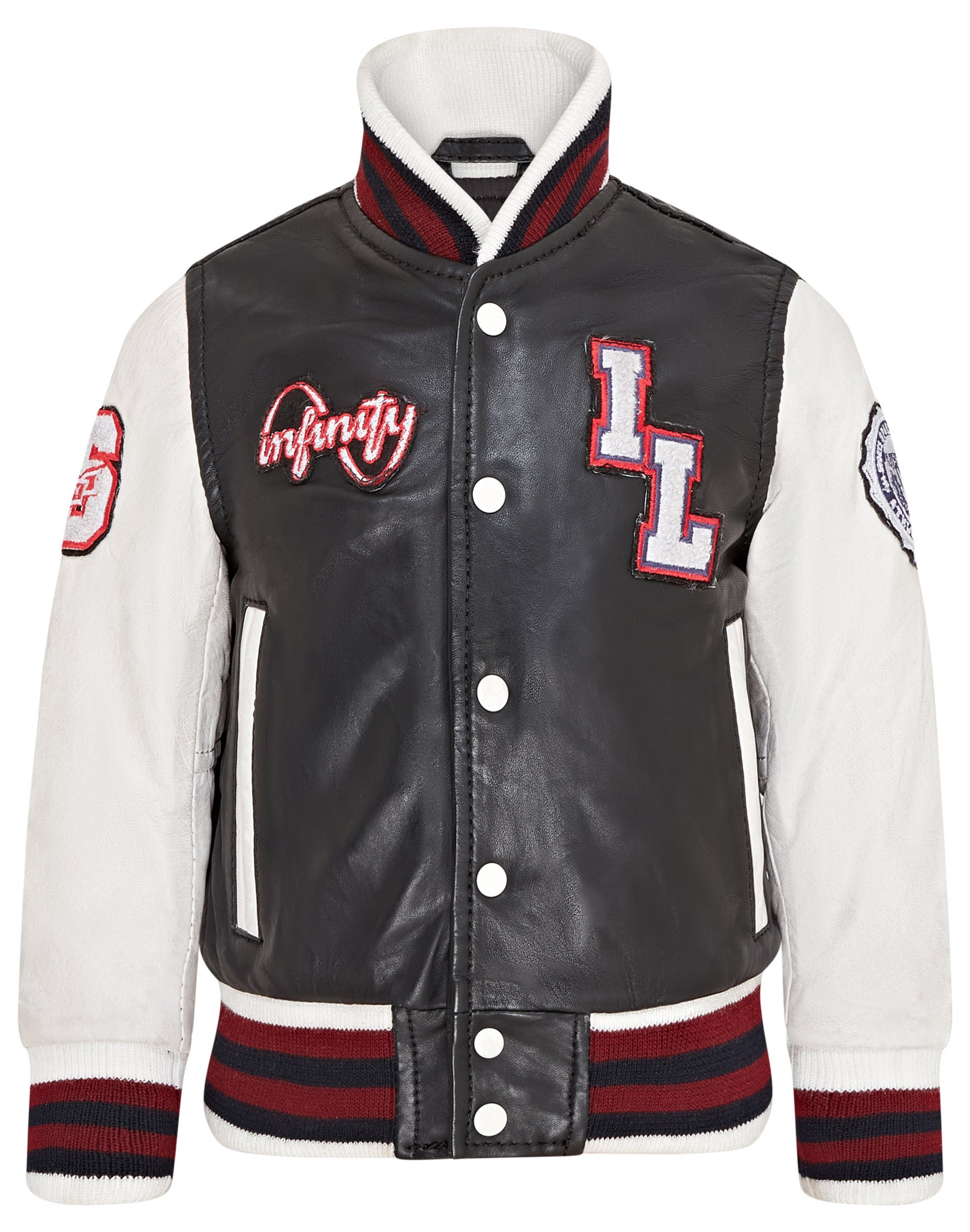 Infinity Leather Kids Unisex Letterman Varsity College Bomber Jacket - Black material_Lamb_Leather - Size 4-5Y