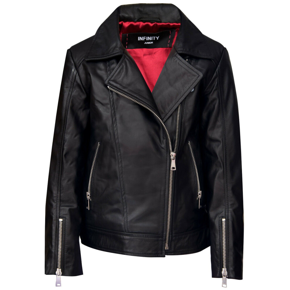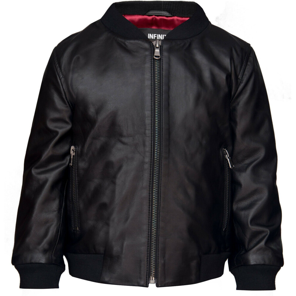 Infinity Leather Childrens Unisex Kids Letterman Varsity College Bomber Jacket - Black Lamb Leather - Size 3-4Y