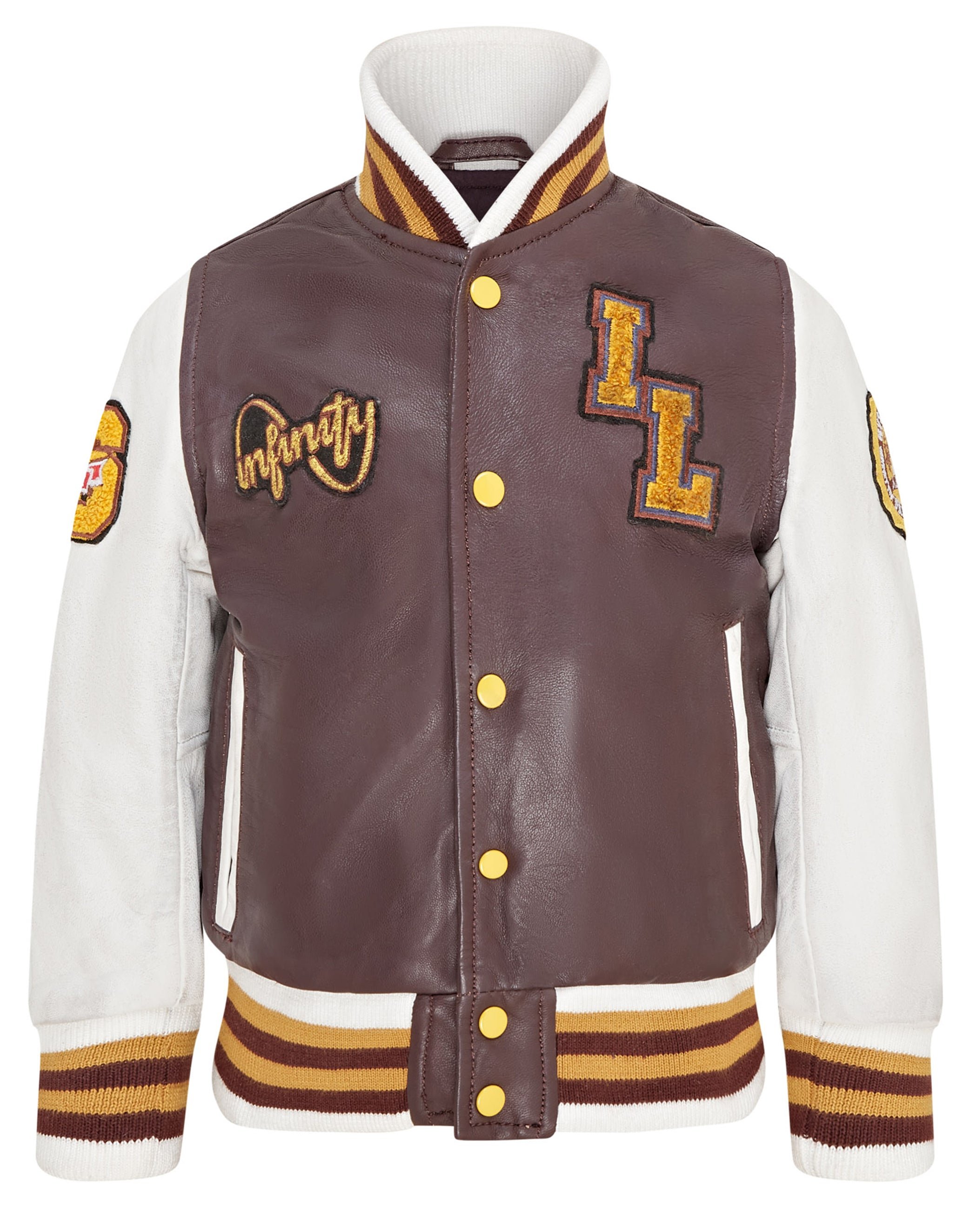 Infinity Leather Kids Unisex Letterman Varsity College Bomber Jacket - Tan - Size 10-11Y