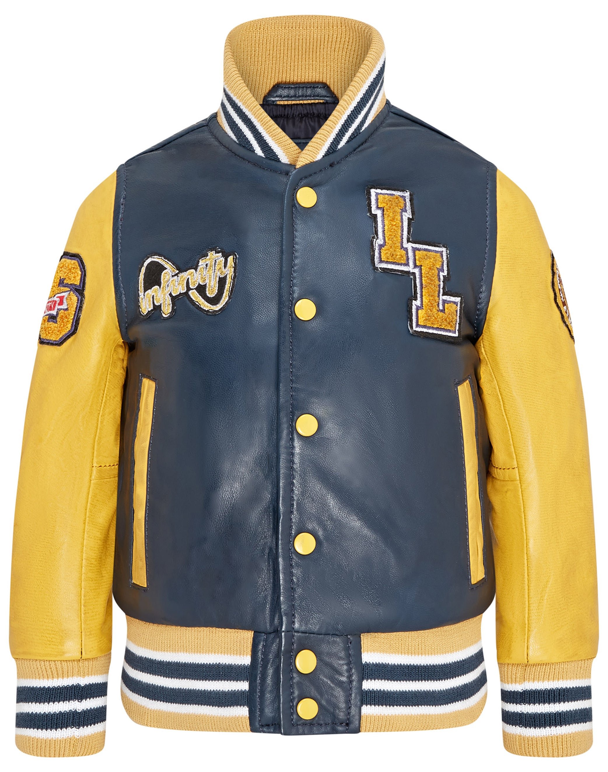 Infinity Leather Childrens Unisex Kids Letterman Varsity College Bomber Jacket - Blue Lamb Leather - Size 6-7Y