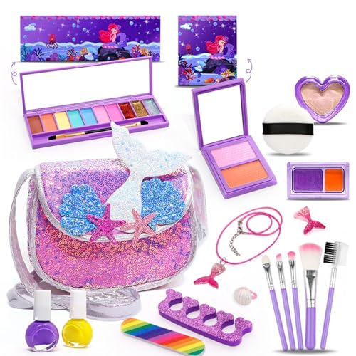 Lubibi Makeup Sets for Girls,24 Pcs Washable Real Make Up Kit with Mermaid Cosmetic Case, Non-Toxic Kids Makeup Set for Little Girls,Children Play Make-Up Toy Mermaid Gift Age 3 4 5 6 7 8 9