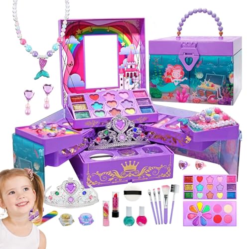 Kids Makeup Set for Girl, Washable Real Cosmetic Little Girls Princess Make Up Toys, Kids Makeup Kit for Girls 4 5 6 7 8 9 10 12 Year Old Christmas Birthday Gift