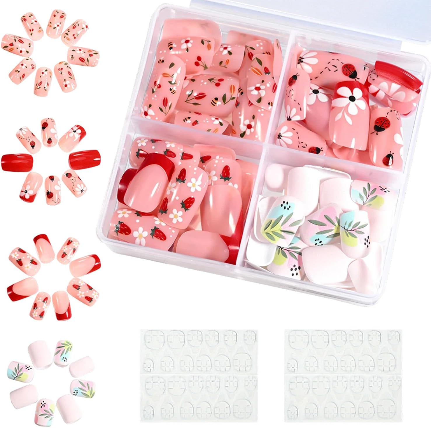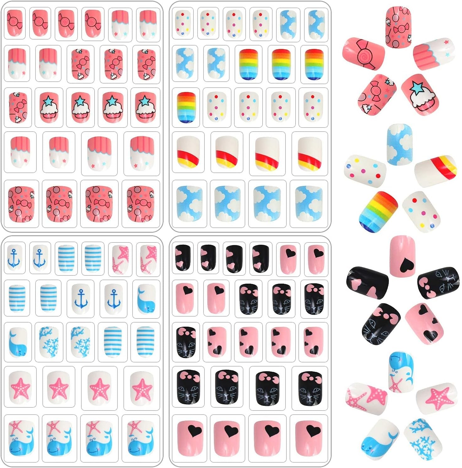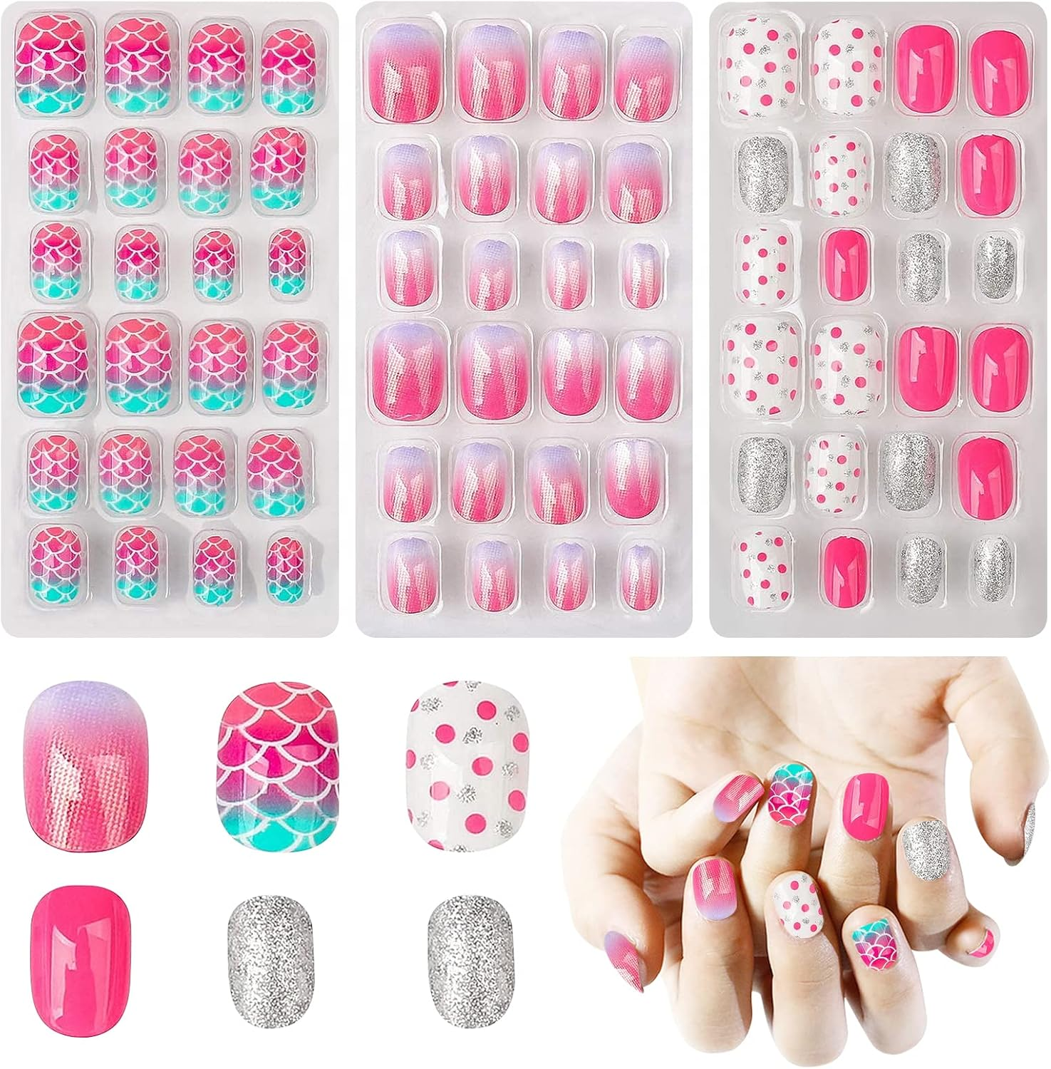 Medo 96 Pcs Kids False Nails, Kids Stick on Nails Children Press on Fake Nail T