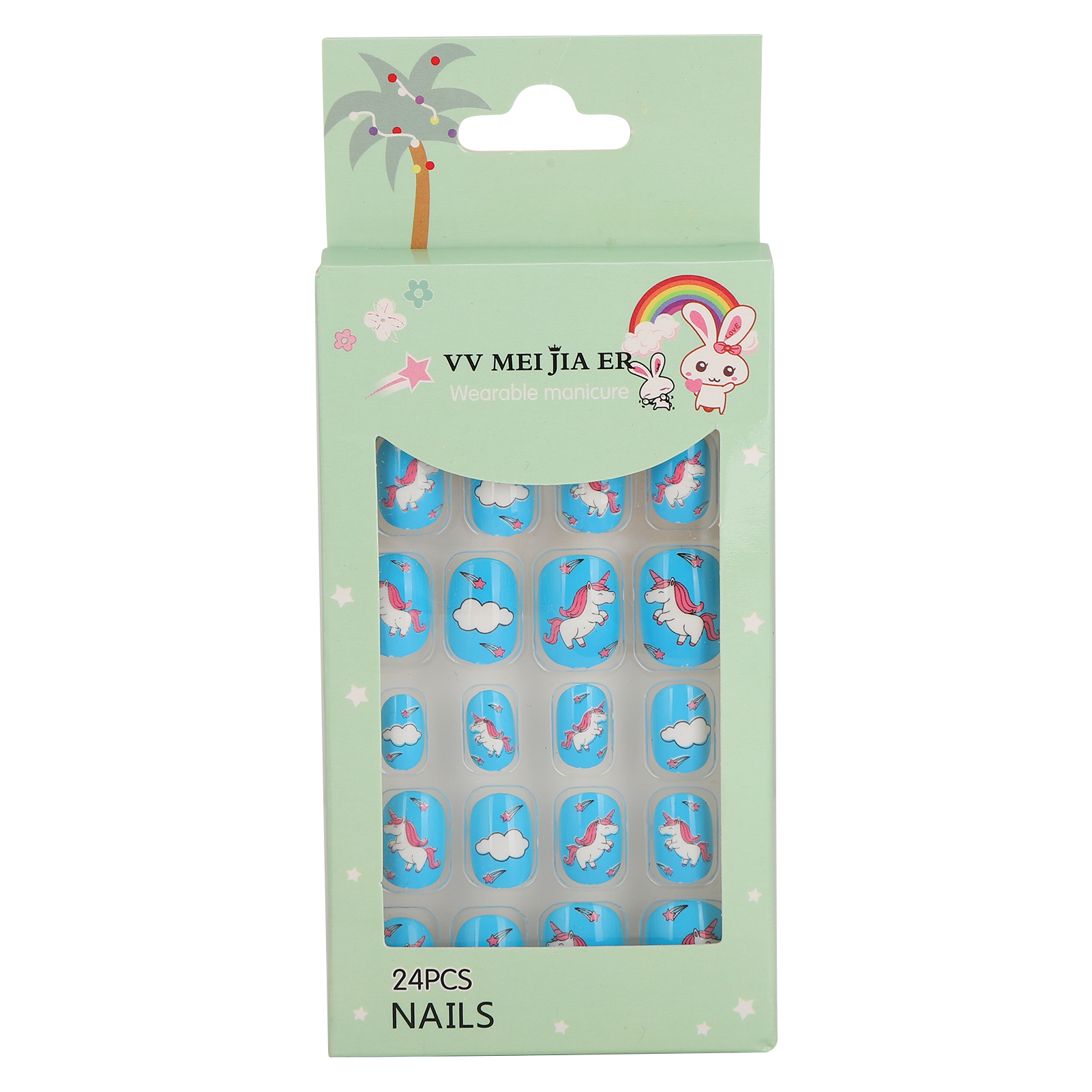 03 24x Removable Kids False Nails Cartoon Pattern Full Cover Artificial False N