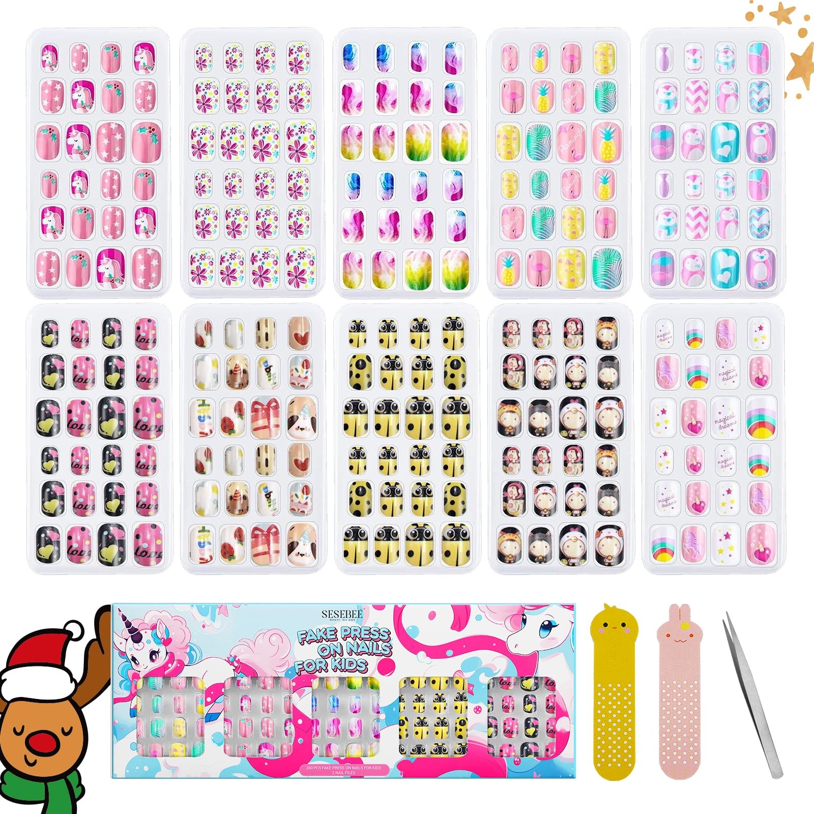 Kids False Nails, Girls Press on Nails Short Full Cover Fake Nail Kits, Kids St
